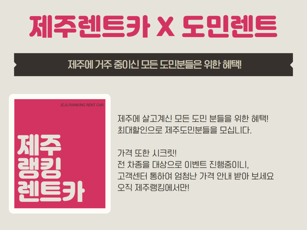 제주에 거주중이신 도민분들을 대상으로 제주랭킹렌트카에서 최대의 할인을 적용드립니다.